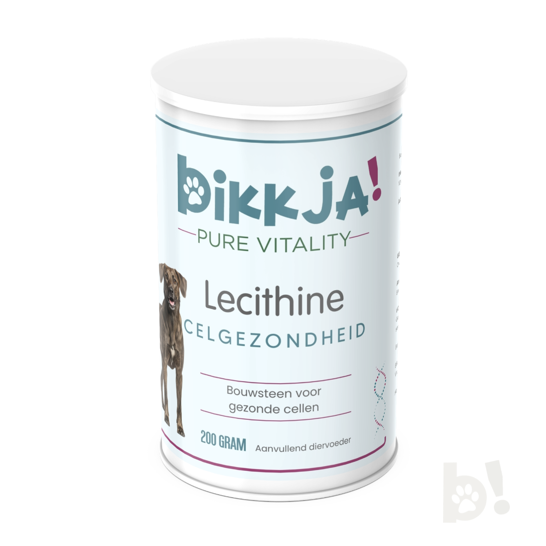 Lecithine is een fosfolipidencomplex dat van nature voorkomt in cellen en wordt vaak toegevoegd aan hondenvoeding als functioneel nutriënt. Onze lecithine voor honden is ontwikkeld als premium aanvulling op een uitgebalanceerd dieet en kan helpen bij het ondersteunen van een gezonde stofwisseling en algehele vitaliteit. Dit pure, plantaardige lecithinepoeder mengt gemakkelijk door droog- en natvoer en past perfect binnen de BIKKJA-filosofie: simpel, puur en functioneel.